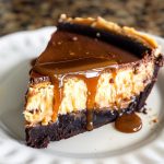 Two favorite desserts in one. A chocolatey brownie crust and a luscious creamy cheesecake middle, covered in a thin layer of chocolate and topped with caramel. I think I've died and gone to heaven.