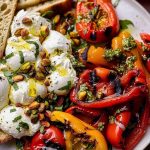 - Assemble and Serve: Arrange the grilled peppers on a serving plate, drizzle with vinaigrette, and scatter burrata over the top. Allow to sit for 5-10 minutes before serving with grilled bread.